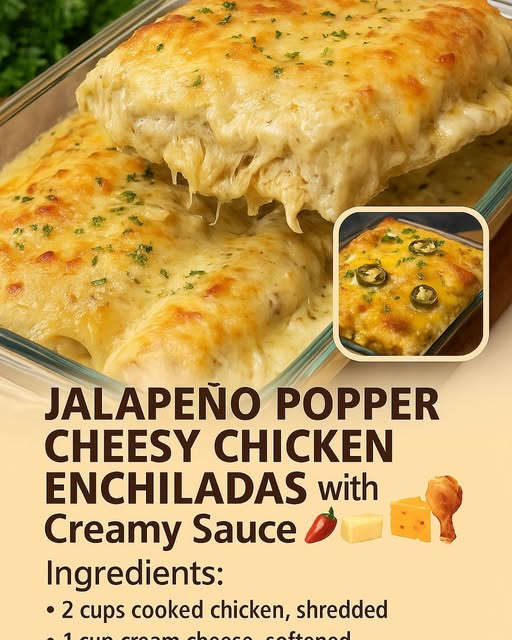 Jalapeño Popper Cheesy Chicken Enchiladas with Creamy Sauce – A Flavor Explosion You’ll Crave Every Week 🌶️🧀🍗