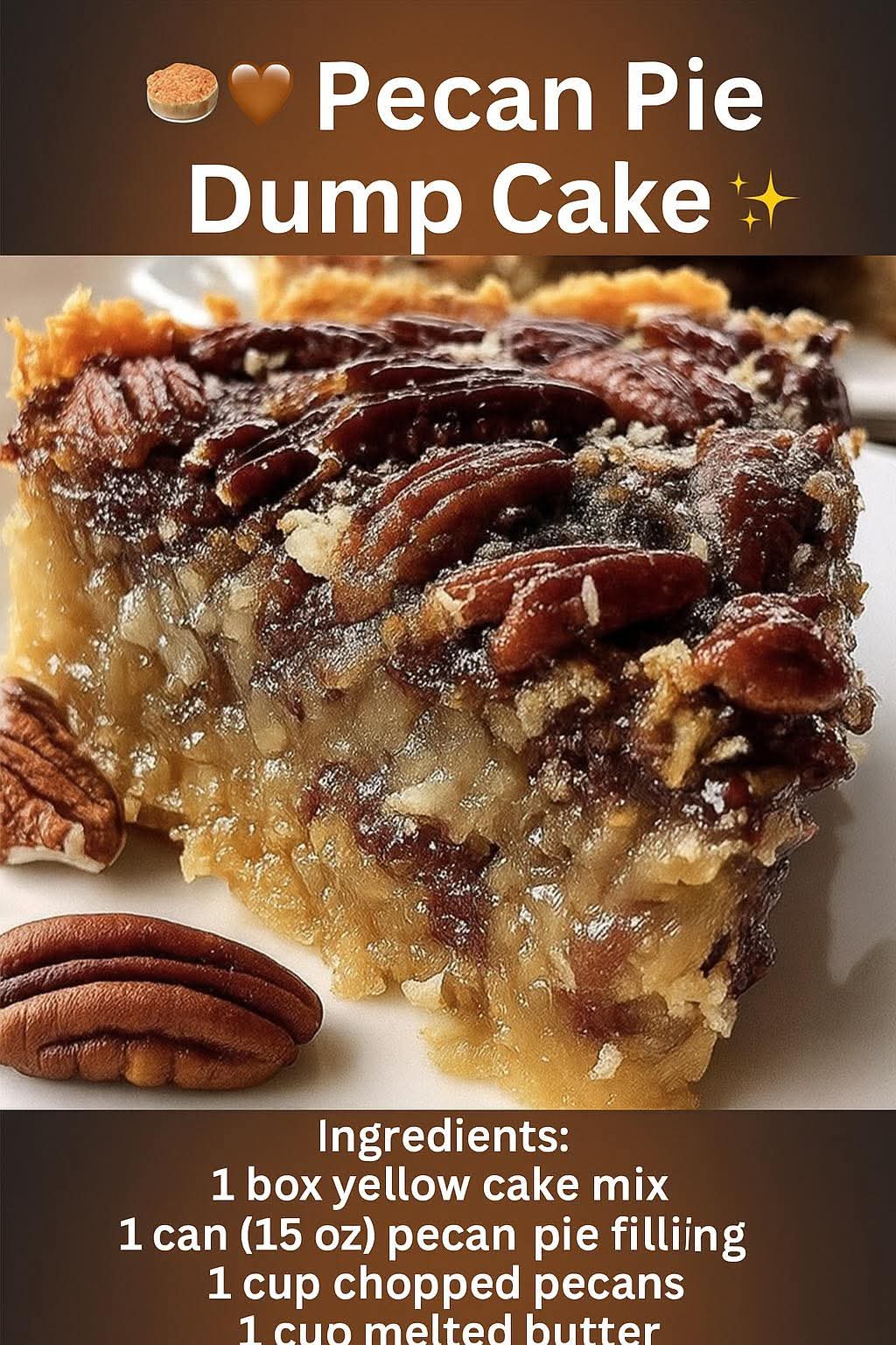 Absolutely! Here’s a big, beautiful, full recipe for a Pecan Pie Dump Cake 🥧🤎 — complete with an introduction, history, ingredients, methods, and even a little love story for dessert.
