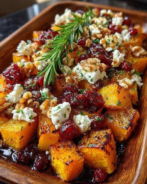 🌟 Caramelized Butternut Squash with Feta, Walnuts & Cranberry-Honey Glaze