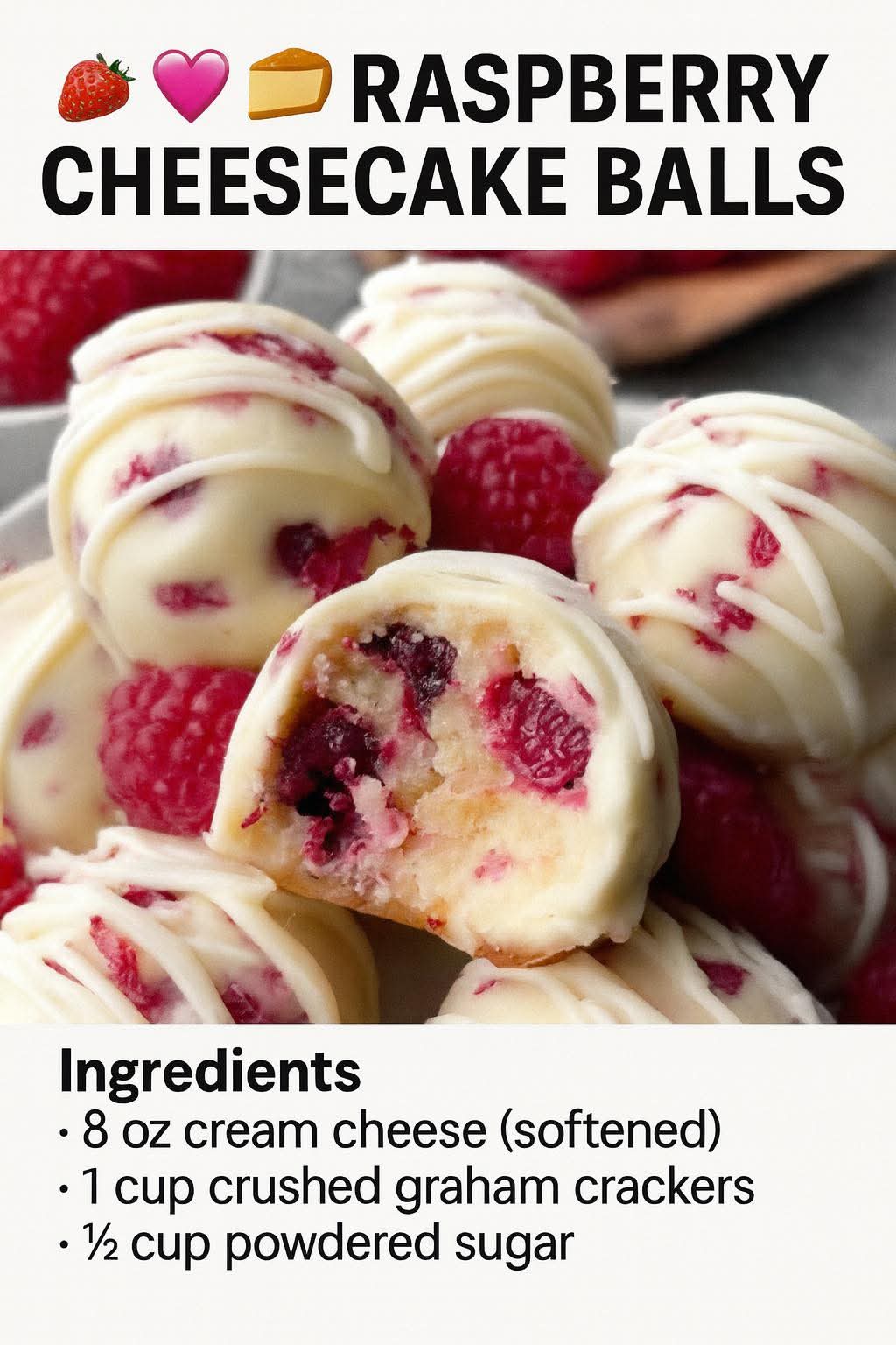 Here is a BIG, full, expanded recipe for Raspberry Cheesecake Balls — complete with introduction, history, method, ingredients, instructions, conclusion, AND even a cute “for the lovers” section as you requested. 🍓💗🍰
