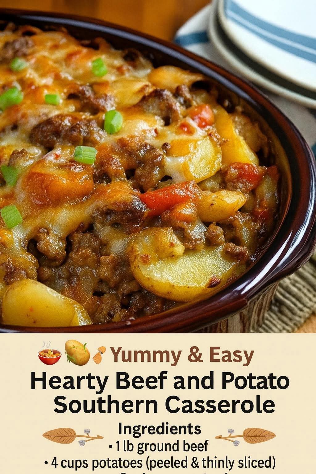 Below is a BIG, full, complete recipe write-up for your Hearty Beef and Potato Southern Casserole — including introduction, ingredients, instructions, methods, history, formation/origins, conclusion, and even a “for the casserole lovers” section.