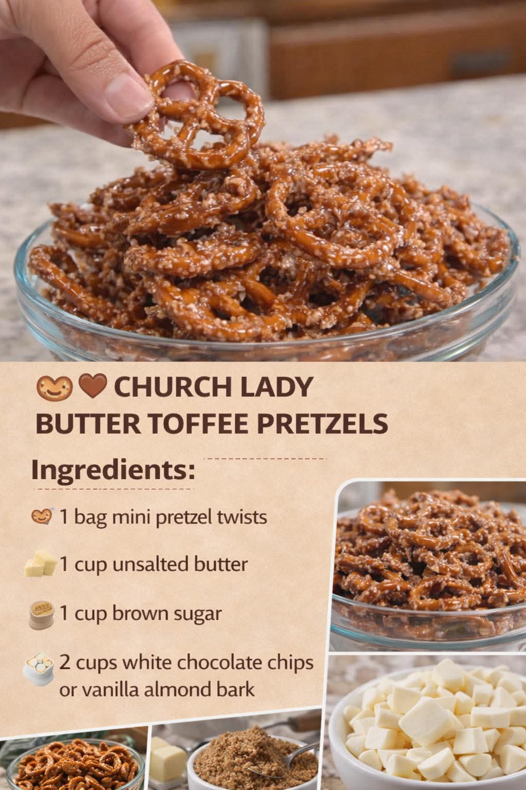 Butter toffee pretzels became popular in Midwestern and Southern church communities in the 1970s–1990s, when quick oven candies were all the rage. Using pantry staples like butter, brown sugar, and pretzels, church cooks created desserts that were: