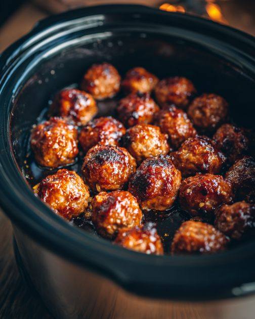 The sauce will thicken naturally, clinging to each meatball with a glossy finish.