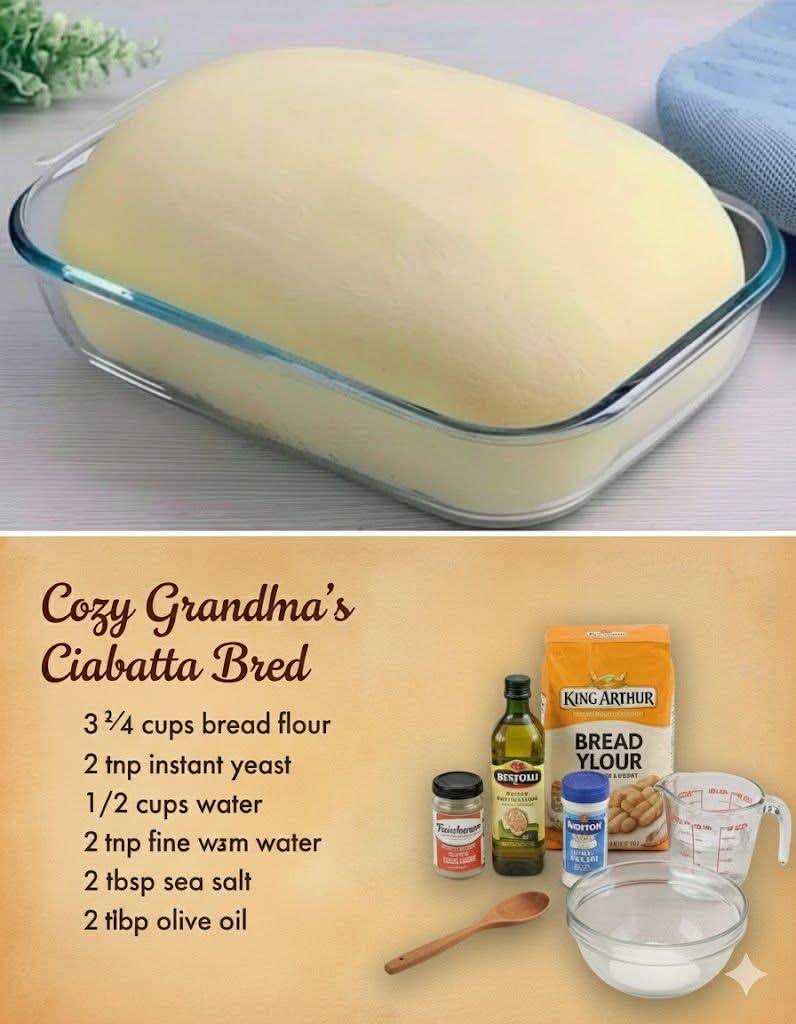 Cozy Grandma’s Ciabatta Bread is more than a recipe—it’s a reminder to slow down, trust your hands, and enjoy the process. Every imperfect shape is beautiful, every loaf tells a story, and every bite carries warmth. Bake it once, and it will become part of your own family tradition 🤍🍞
