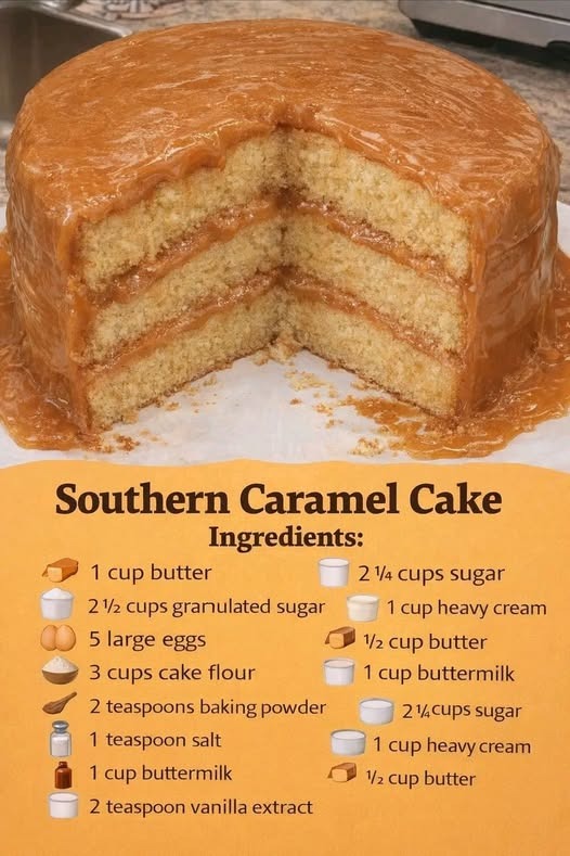 This Southern Caramel Cake recipe delivers everything expected from a classic dessert—rich flavor, elegant appearance, and timeless appeal. It is a recipe worth saving, sharing, and returning to for generations.