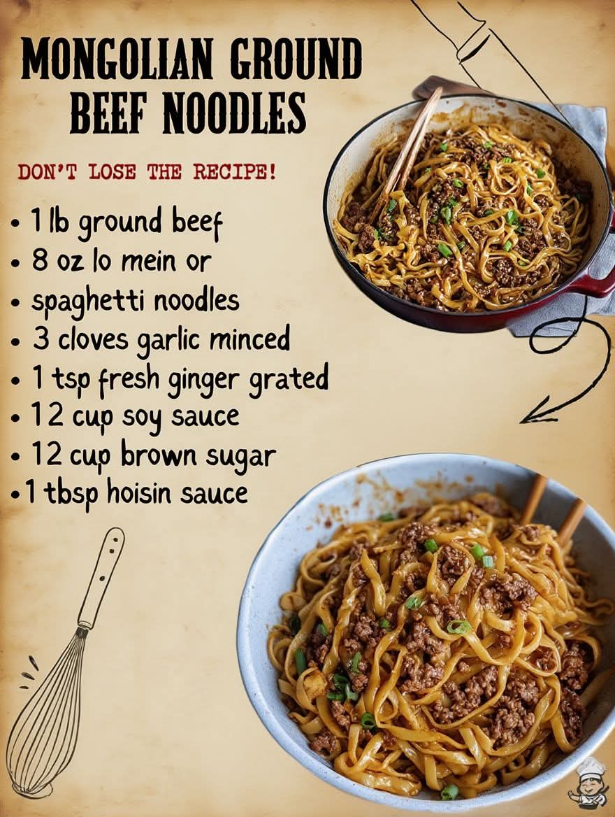 Mongolian Ground Beef Noodles is proof that simple ingredients can create unforgettable flavor. Sweet, savory, comforting, and endlessly adaptable, this dish earns its place in your regular rotation. Whether you’re cooking for loved ones or just yourself, one bowl is never enough—this is comfort food that truly brings people back for more.