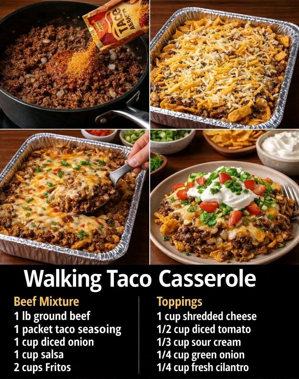 A bold, cheesy, crowd-pleasing casserole inspired by the famous walking tacos you love—easy, cozy, and perfect for busy nights or gatherings.