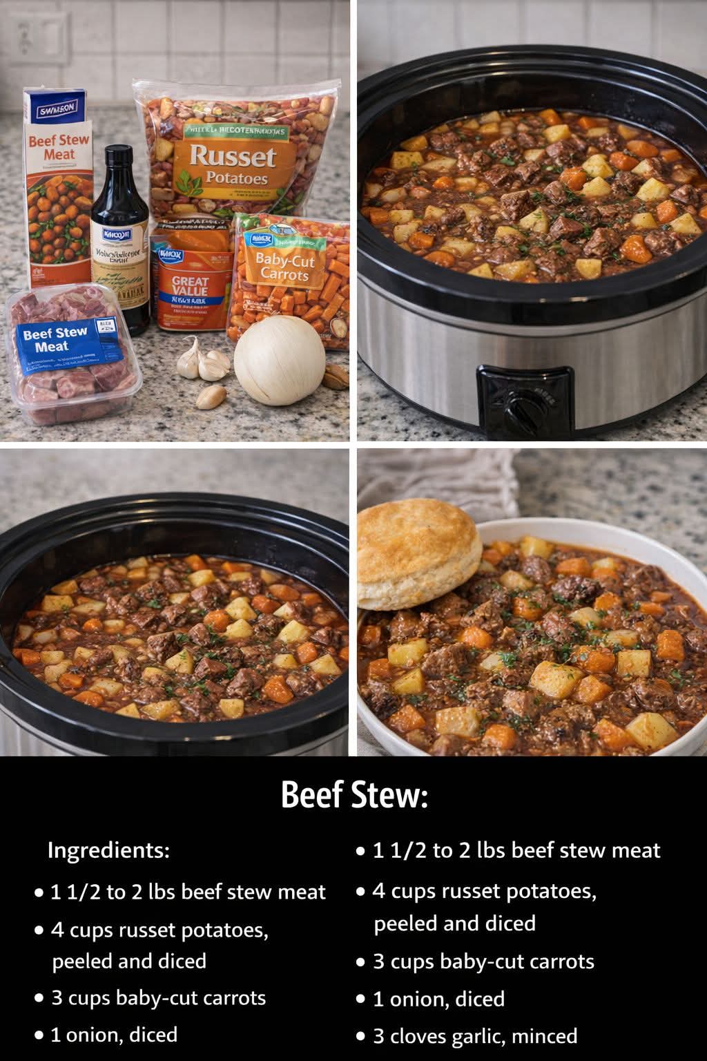 - 2 lbs beef stew meat (chuck works best)