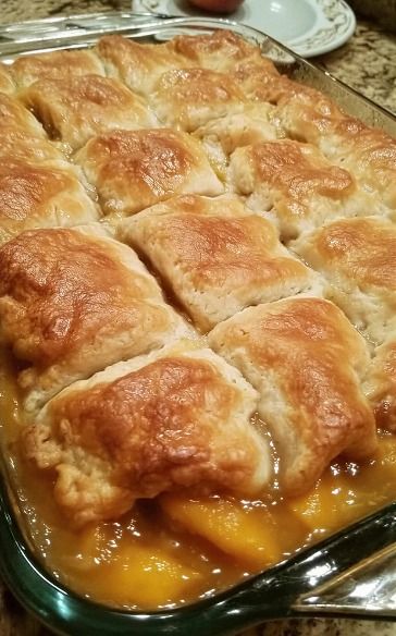 This process creates a warm peach cobbler with a tender interior and crisp topping.
