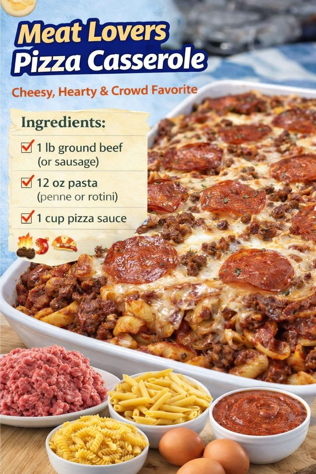 🍕🔥 Meat Lovers Pizza Casserole — Cheesy, Hearty & Crowd Favorite