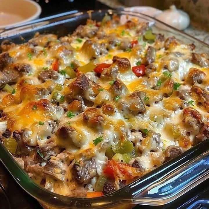 Imagine the flavors of Philadelphia’s streets baked into a warm, cheesy, golden casserole — a guaranteed crowd-pleaser.