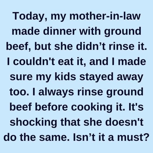 “My mother-in-law made dinner with ground beef, but she didn’t rinse it. I couldn’t eat it, and I made sure my kids stayed away too. I always rinse ground beef before cooking it. Isn’t it a must?”
