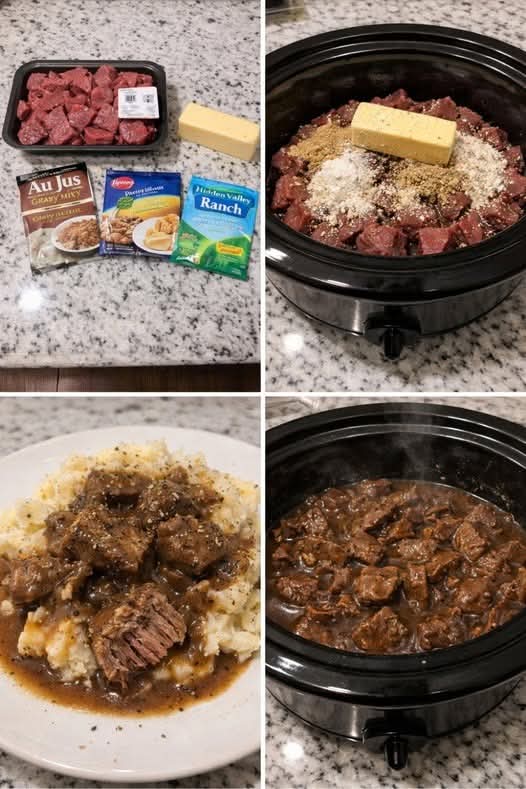 Using seasoning packets such as au jus mix, onion soup mix, and ranch seasoning became a convenient way to build deep flavor quickly — turning simple stew meat into a rich, gravy-covered masterpiece.
