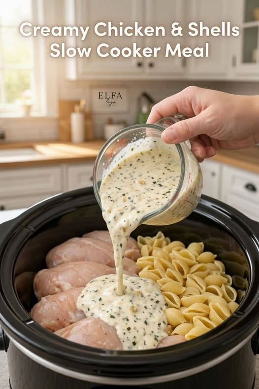 This slow cooker creamy garlic Parmesan chicken and pasta is the definition of comfort food. Tender, juicy chicken cooks low and slow in a rich garlic cream sauce, then perfectly tender pasta shells soak up every bit of that velvety flavor.