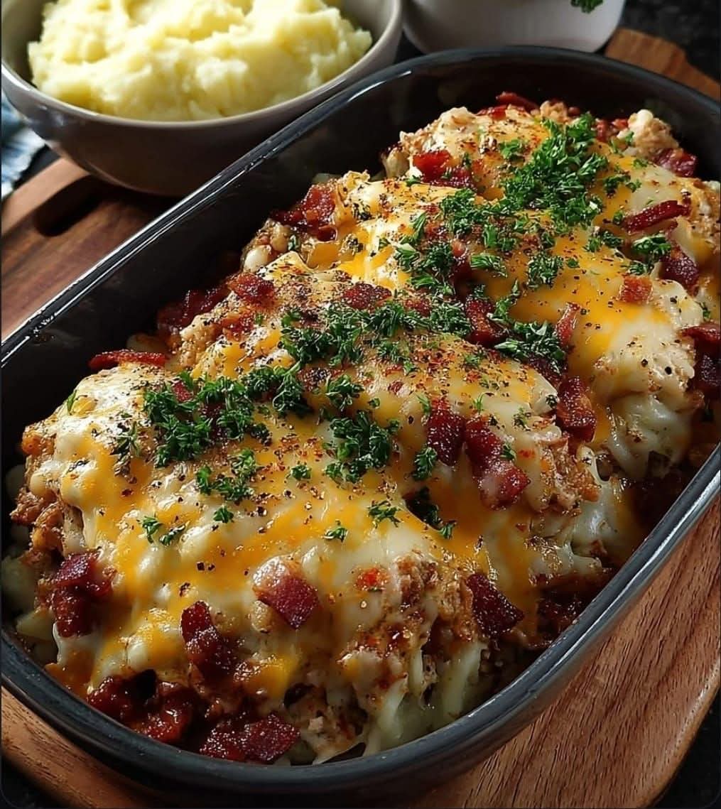 Meatloaf with mashed potatoes and cheese is a timeless comfort dish that combines tradition, flavor, and warmth. The juicy meat, creamy potatoes, and melted cheese create a perfect harmony.