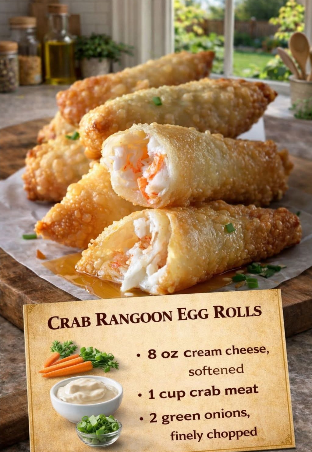 Crab Rangoon Egg Rolls bring together two beloved favorites into one irresistible bite. You get the rich, creamy, savory filling of classic crab rangoon wrapped inside a crisp, golden egg roll shell. Each bite delivers a contrast of textures—crunchy on the outside and smooth, flavorful on the inside—making these perfect for appetizers, party platters, or an indulgent homemade snack.