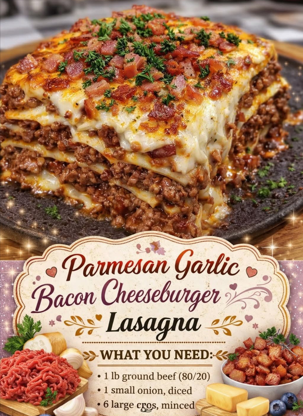 🧄🥓🧀 Parmesan Garlic Bacon Cheeseburger Lasagna 🍔🇮🇹
